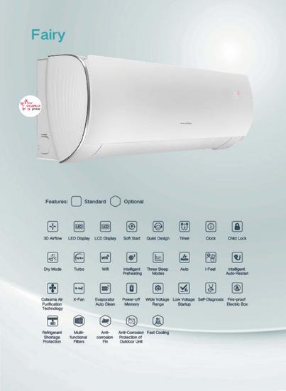 Функции: I Feel (температурен сензор в дист.), таймер, автоматичен рестарт, топъл старт, самодиагностика, Inteligent defrost,Force Defrosting, поддържащ зимен режим, нощен режим, изсушаване на топлообменника на вт. тяло след изключване.Скорости на вентилатора на вт. тяло - 4, автоматично насочване на въздушният поток по вертикала.